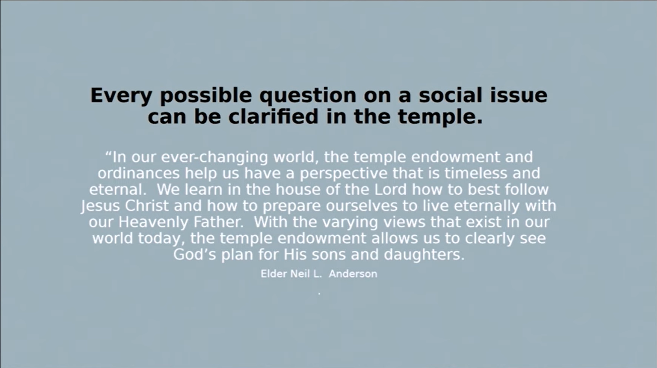 So far in this presentation, we’ve been able to take a social issue—or you can kind of think about it as a whole—and we have checked it against prophets, apostles, scriptures, and temple ordinances.