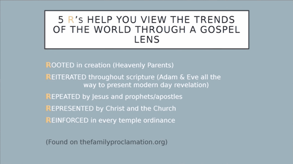 I’m going to specifically and briefly take the concept of gender identity. And I do this because it is at the forefront of our society right now. But it also has one of the most powerful and beautiful doctrinal truths that I feel we have in the Church.