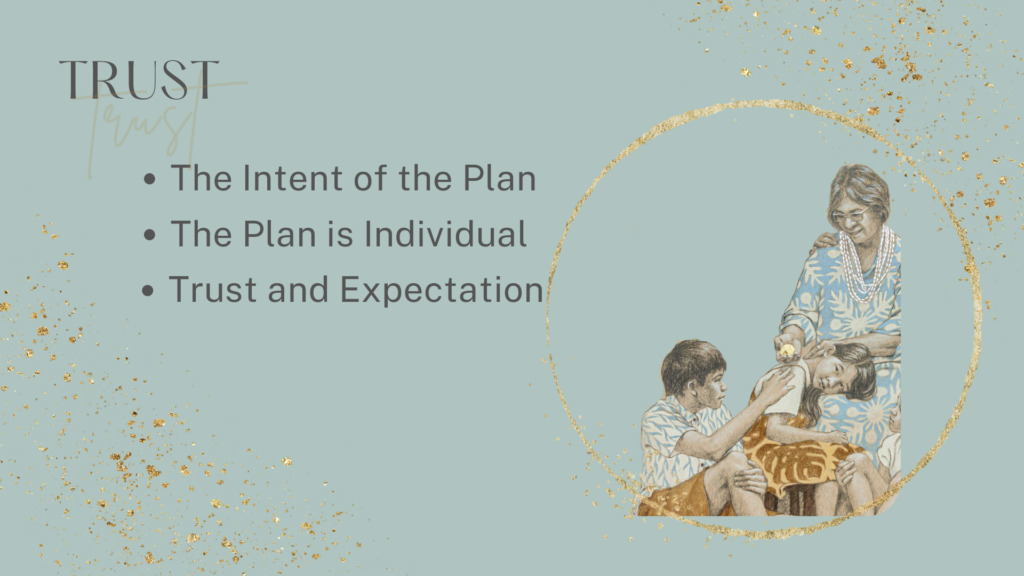 Lehi and Sariah showed their trust in God by staying at the tree together. They trusted in God’s individualized plans and timing. Overcoming their frustrations and fears through reliance on God’s guidance and promises, Lehi and Sariah exemplify profound trust in God’s love, His specific plans for each person, and the peace that comes from steadfast faith in His divine wisdom and care.