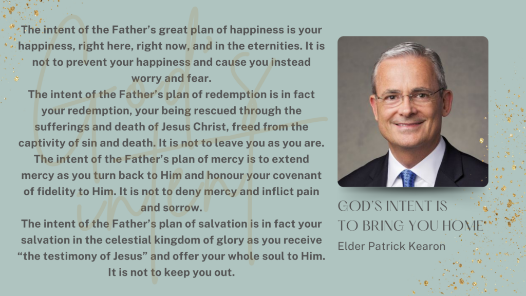 - Kearon, Elder Patrick. God’s Intent Is to Bring You Home. 7 Apr. 2024. Link.
