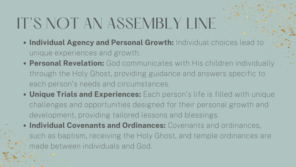 Other instances of the Plan of Salvation being specifically tailored to each individual are patriarchal blessings, individual testimonies and a personal relationship with Christ.