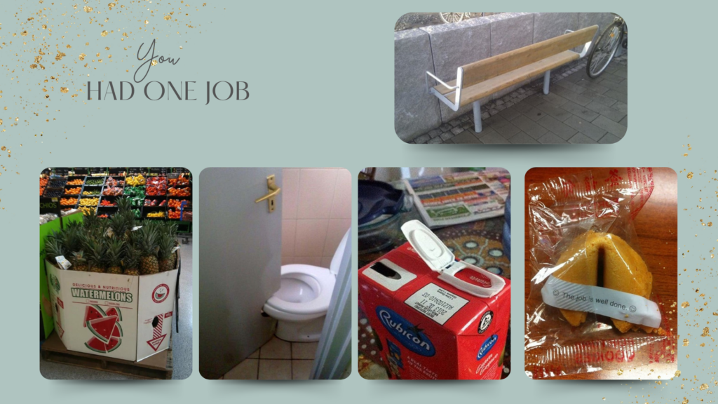 Have you ever seen the “you had one job” memes? They really make me laugh. This kind of meme highlights the absurdity or obviousness of the mistake, and suggests that the person had only one thing to do, and yet managed to mess it up, causing confusion or trouble. Here are some of my favorites.