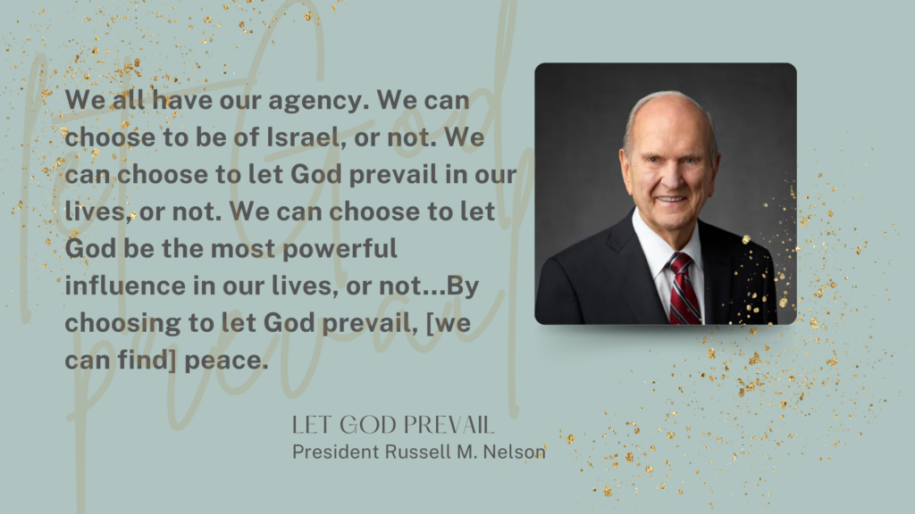“We all have our agency…We can choose to let God prevail in our lives, or not. We can choose to let God be the most powerful influence in our lives, or not…By choosing to let God prevail, [we can find] peace.”