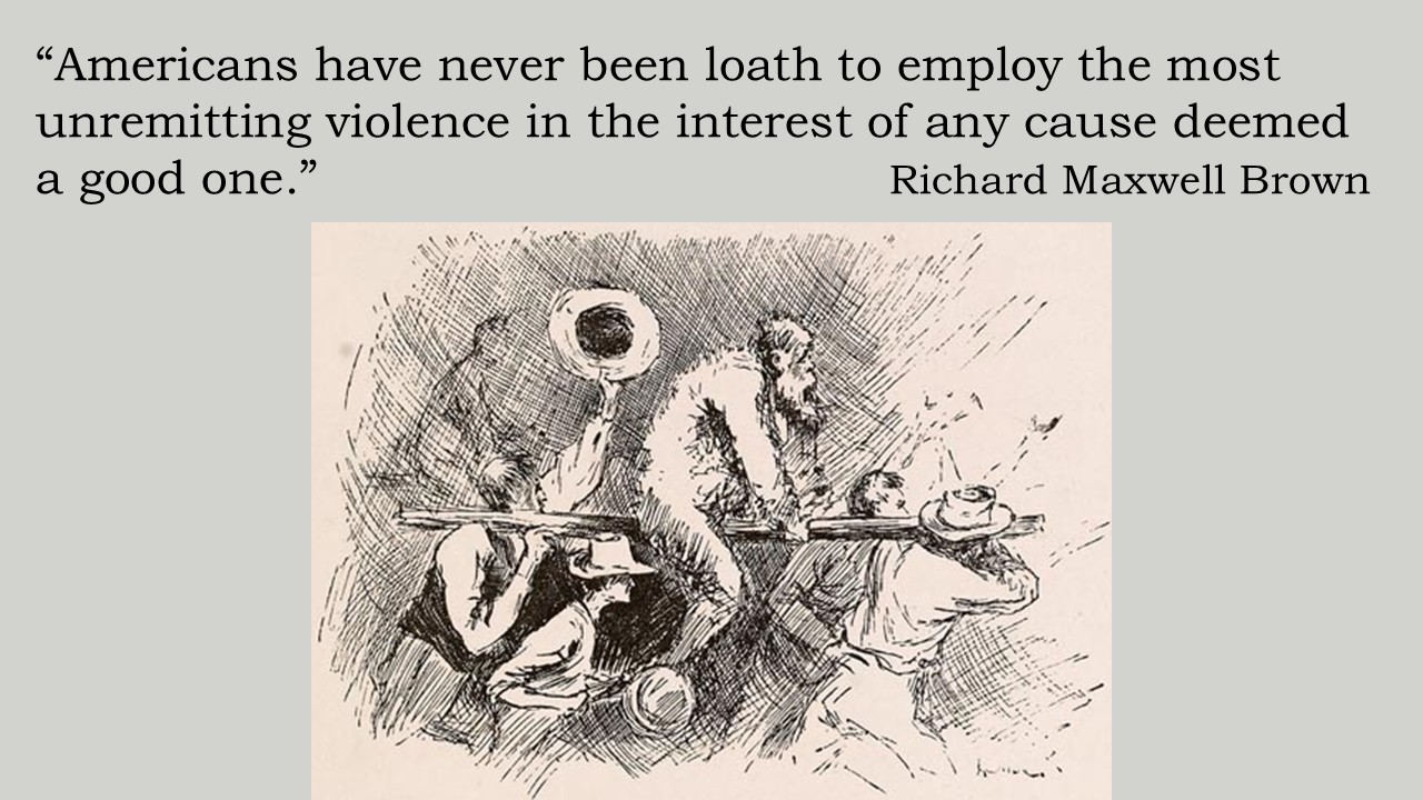 The presentation emphasizes that 18th and 19th-century America was broadly characterized by a culture of violence, where physical confrontations and extralegal justice were often expected responses to conflict.