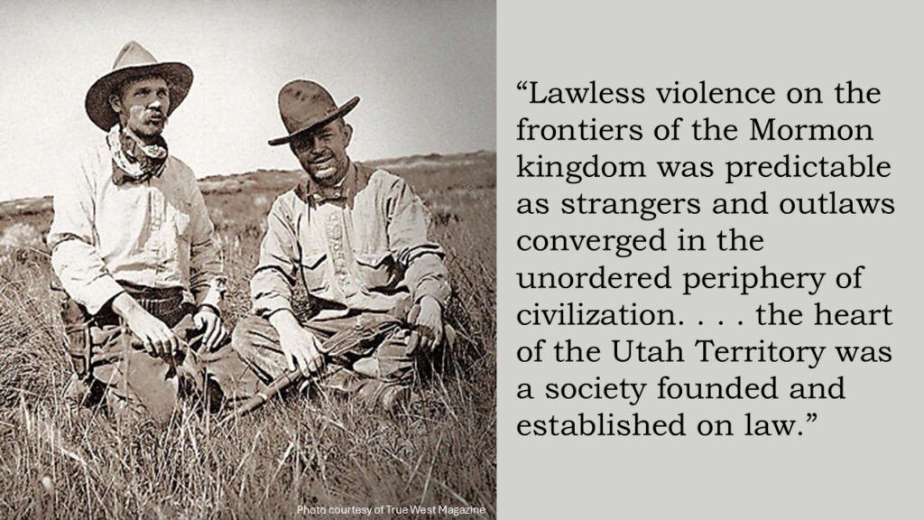 Foster presents evidence showing that, compared to surrounding territories like Montana and Texas, Utah had significantly less vigilante activity and extralegal violence. He cites scholars who note that Utah was one of the least violent jurisdictions in the western United States during the 19th century.