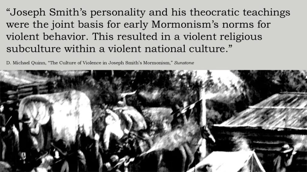 Joseph Smith’s personality and his theocratic teachings were the joint basis for early Mormonism’s norms for violent behavior. This resulted in a violent religious subculture within a violent national culture.”⁵
