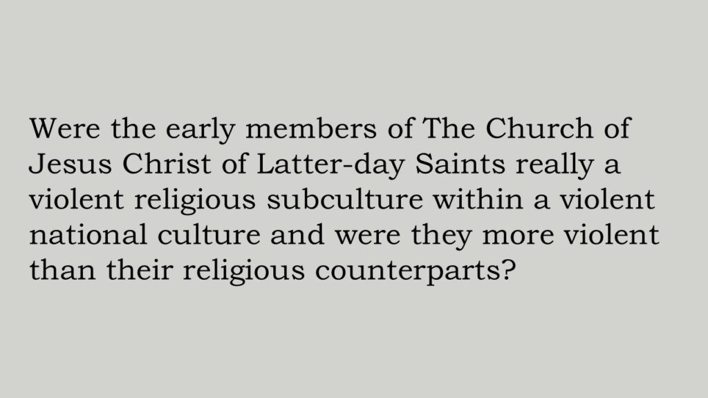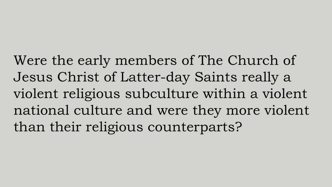 Such pronouncements and accusations demand an answer to the question: Were the early members of The Church of Jesus Christ of Latter-day Saints really a violent religious subculture within a violent national culture, and were they more violent than their religious counterparts?