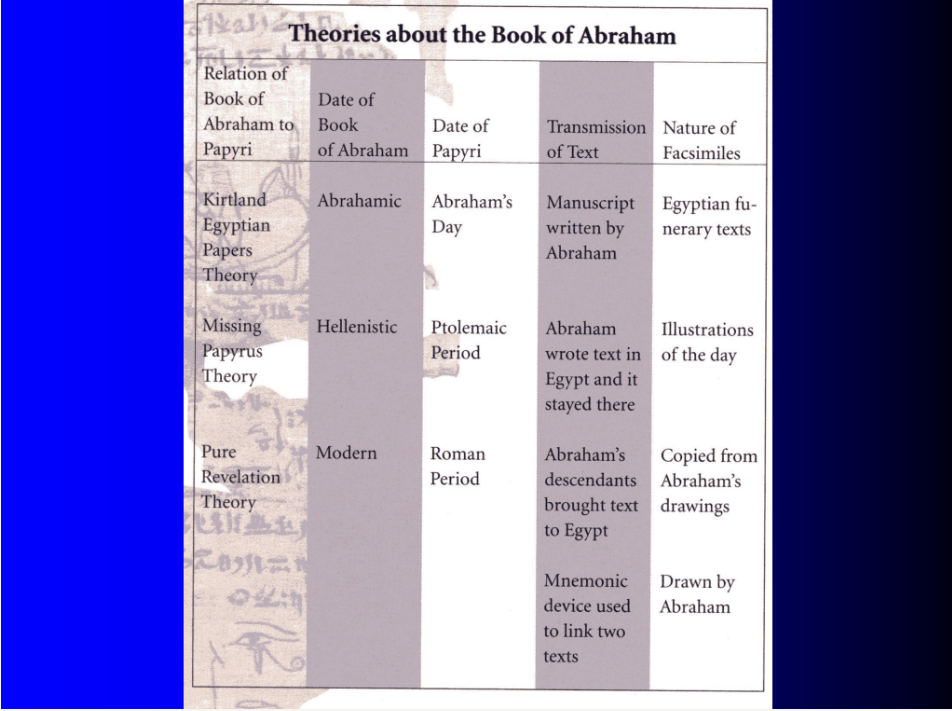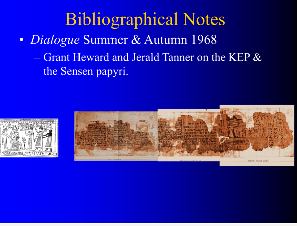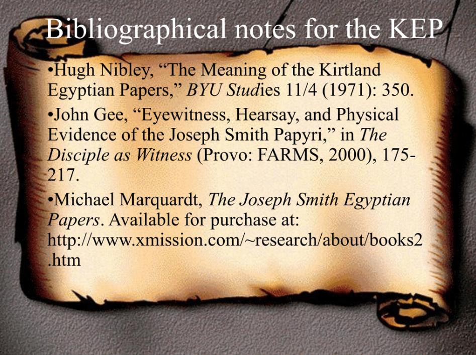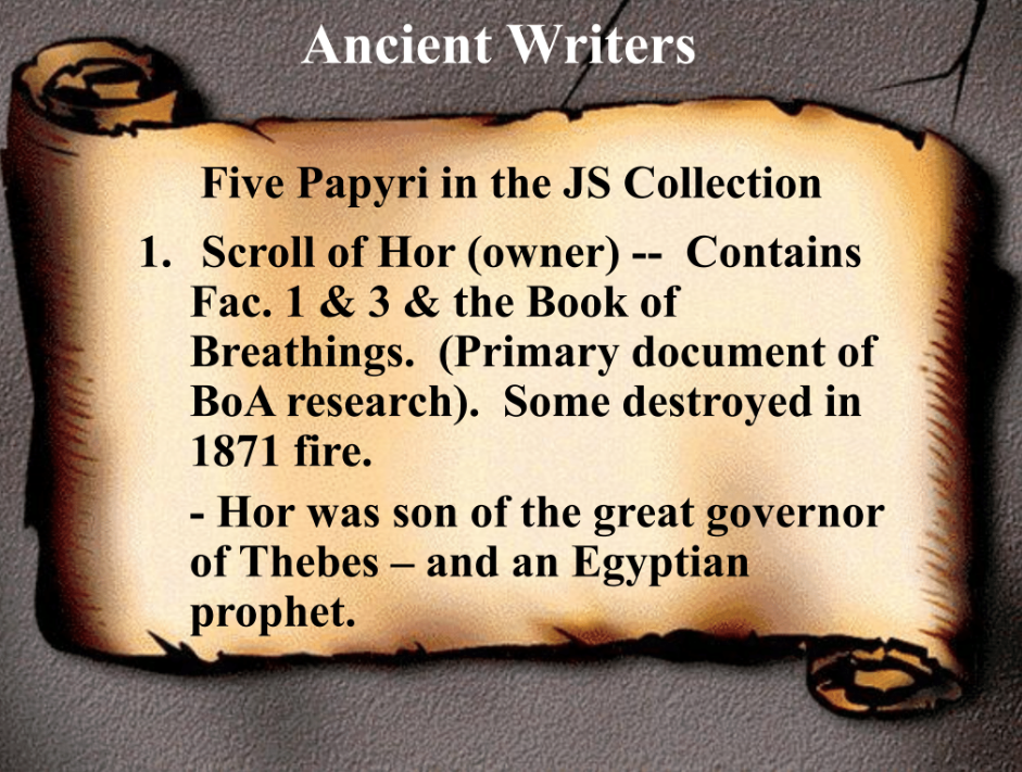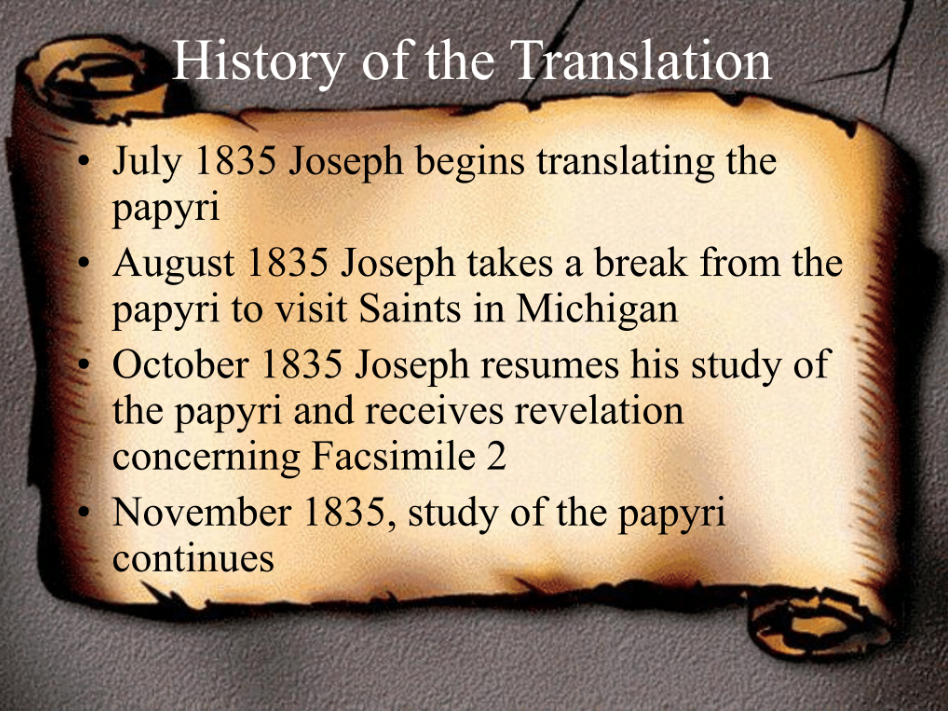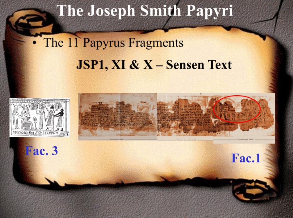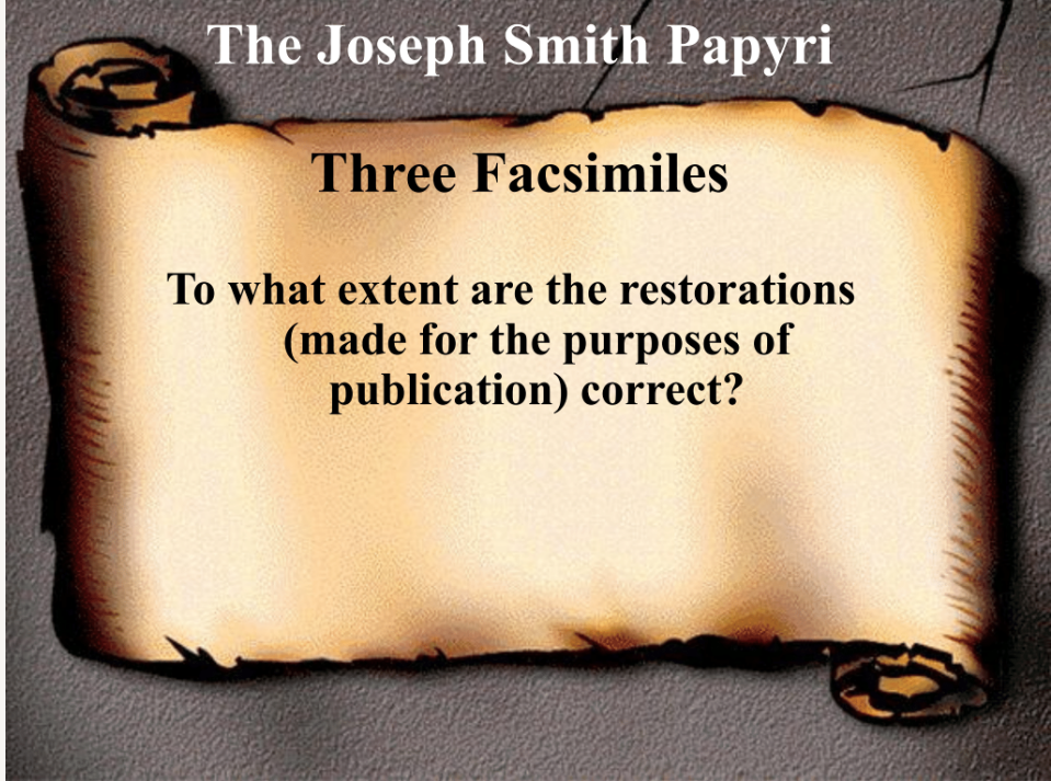 The first is the three facsimiles—which are the papyri that were published together with the Book of Abraham initially in 1842 in the Times & Seasons; as we’ll describe in more detail later.