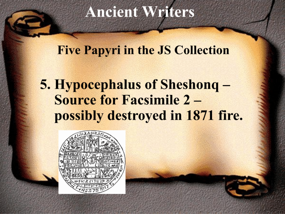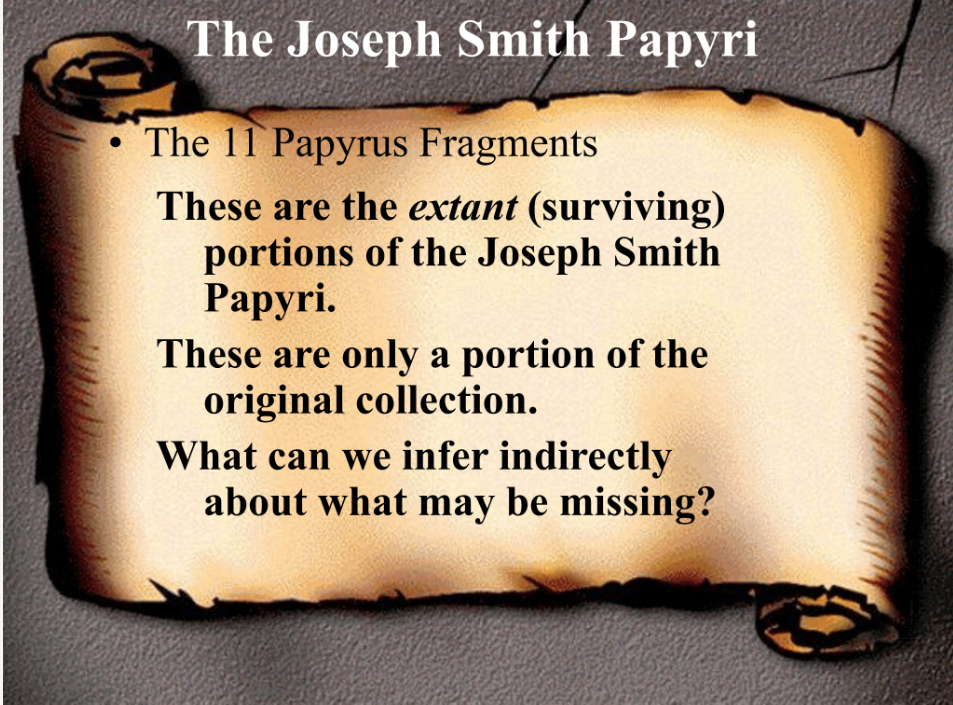And there are 11 papyrus fragments from Joseph Smith’s collection that we do have—and they still exist—you can take a short drive to the north to the LDS Archives and that’s where they are.