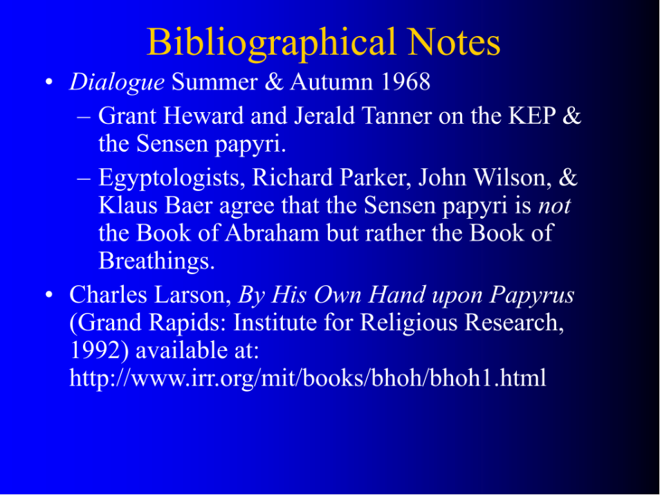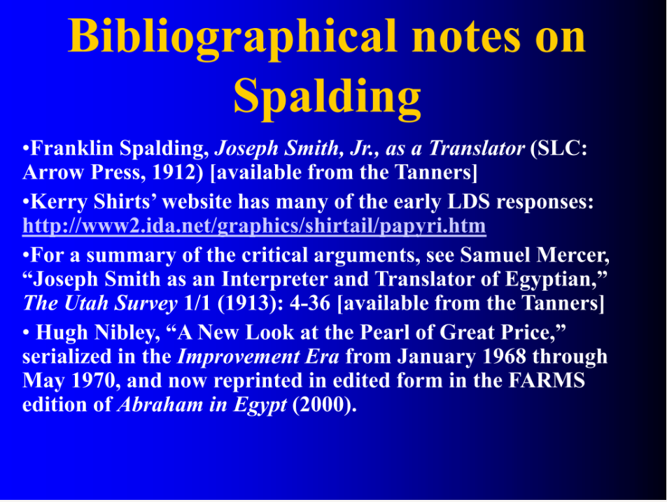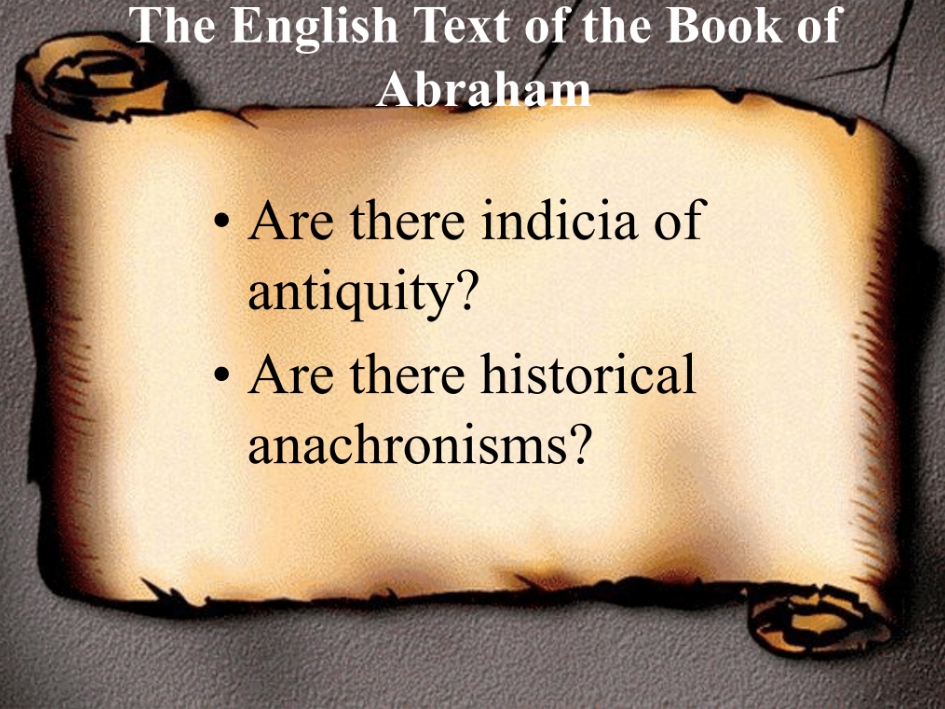 We don’t have a lot of time to do a detailed outline—but a fairly simple outline of the categories of issues that come up in Book of Abraham polemics.