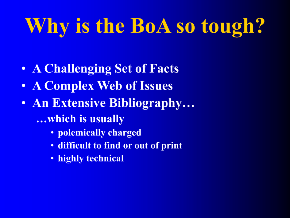 The first large category I want to talk about—or just identify (we’re not going to talk about these in detail)—is historical issues.