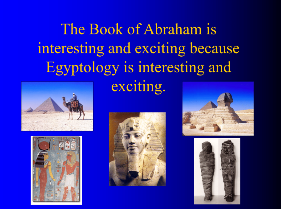 Now the Book of Abraham is something that of course involves Egyptology. And Egyptology is fun and exciting! So the study of the Book of Abraham should be fun and exciting as well.