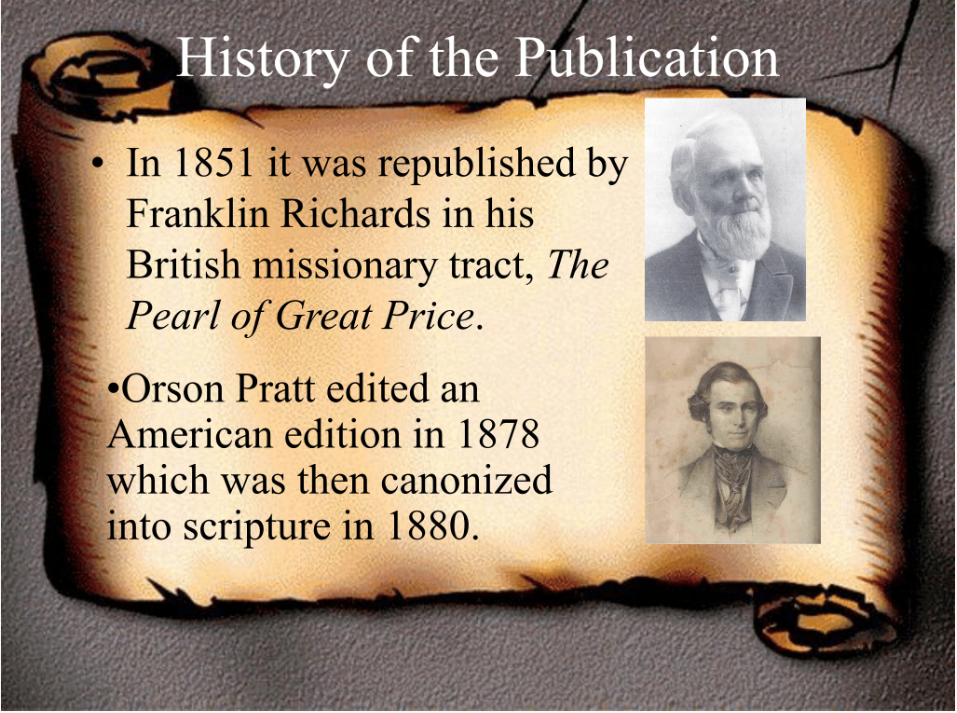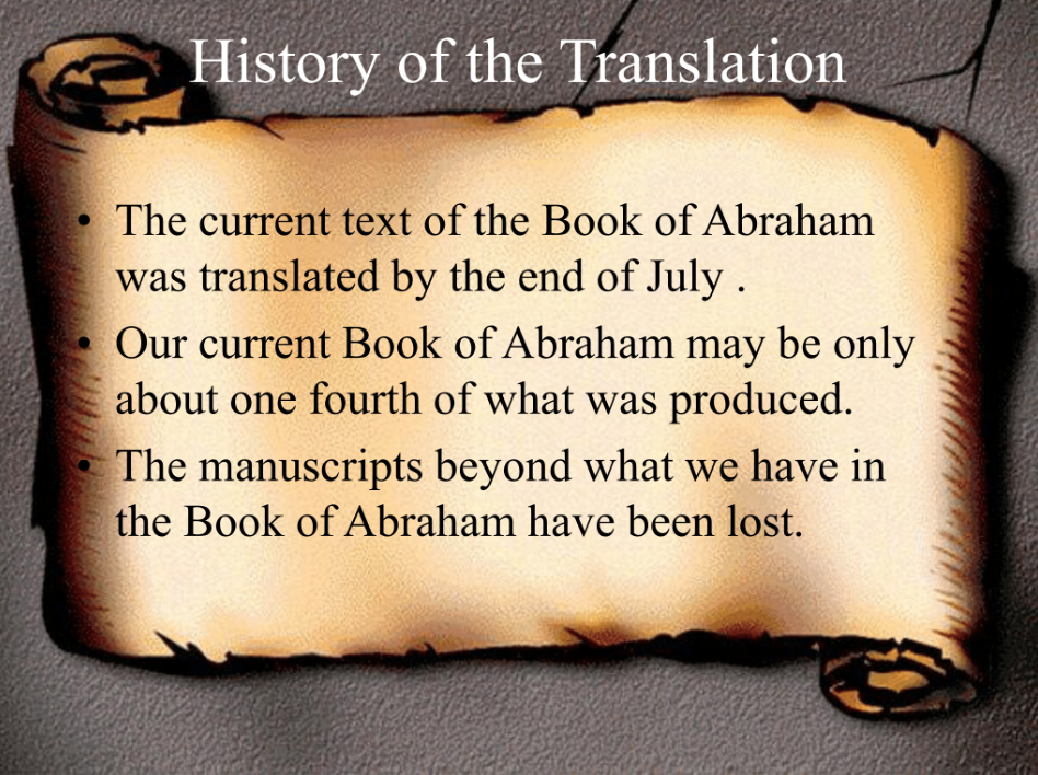- There’s the history of the translation of the English Book of Abraham and;