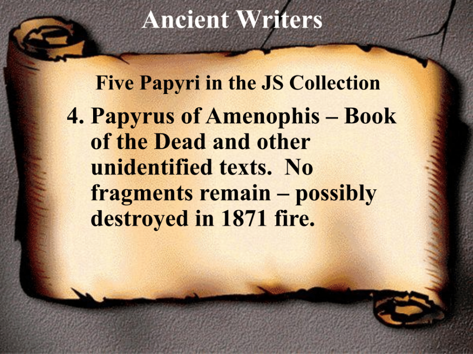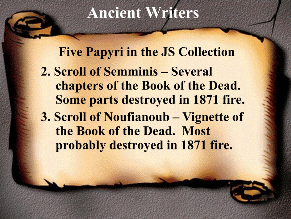 - First of all, there’s the history of the Joseph Smith collection of Egyptian antiquities—and in particular the papyri—and we’re going to talk about that a little bit later in this presentation.