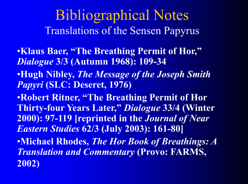 Nibley’s which we already mentioned—now these two are actually translations of Louvre Papyrus 3284 which is a longer version.