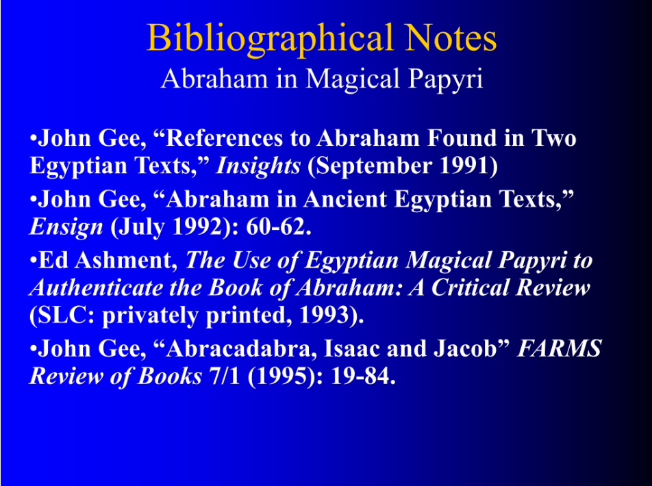 And then John Gee published a rejoinder to Ashment with one of the all-time great titles in the history of the FARMS Review, “Abracadabra, Isaac and Jacob,” and it’s even funnier if you know what Ashment’s argument is.