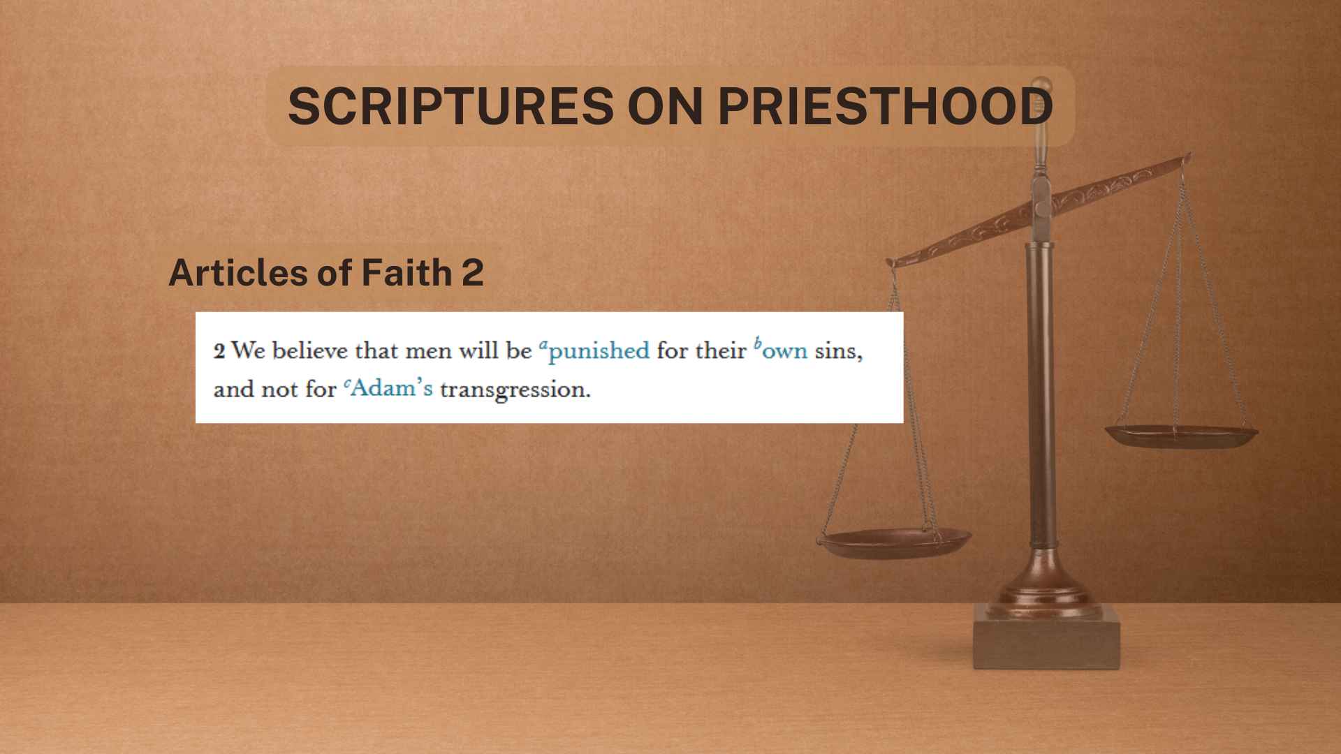 We believe that men will be punished for their own sins and not for Adam’s transgressions.