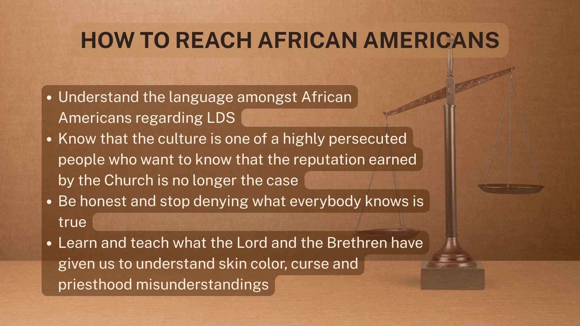 How do we reach African-Americans? We’ve got to understand the language and the culture of African-Americans regarding our LDS culture.