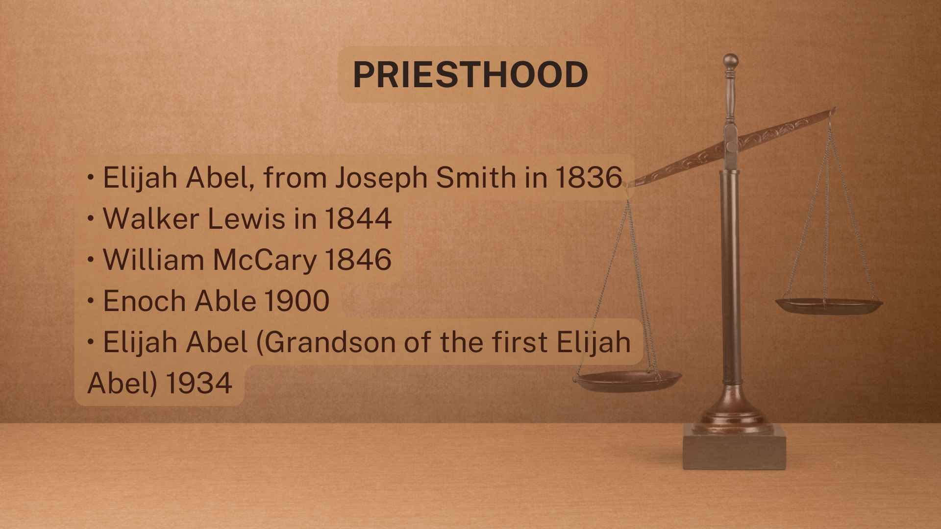 Joseph Smith gave it to Elijah Abel in 1836. Walker Lewis was ordained in 1844. William McCary. (Some people don’t like to mention William McCary because he didn’t do good things, but I’ll mention him.) William McCary got it in 1846.