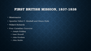 In his autobiography, Pratt recalled that, quote, “Several of the Canadian elders felt a desire to go on a mission to their friends in that country,” end quote. Indeed, four of the seven elders who were part of the first British mission were Canadian converts.
