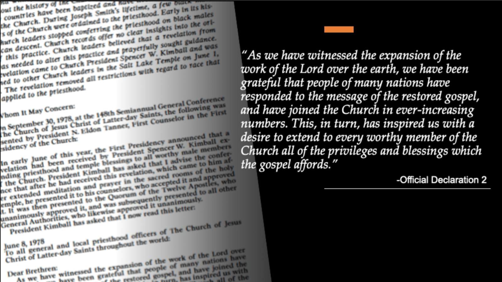 There is clear evidence that this was the case in the first paragraphs of the widely-distributed 8 June 1978 letter announcing the revelation ending the ban.