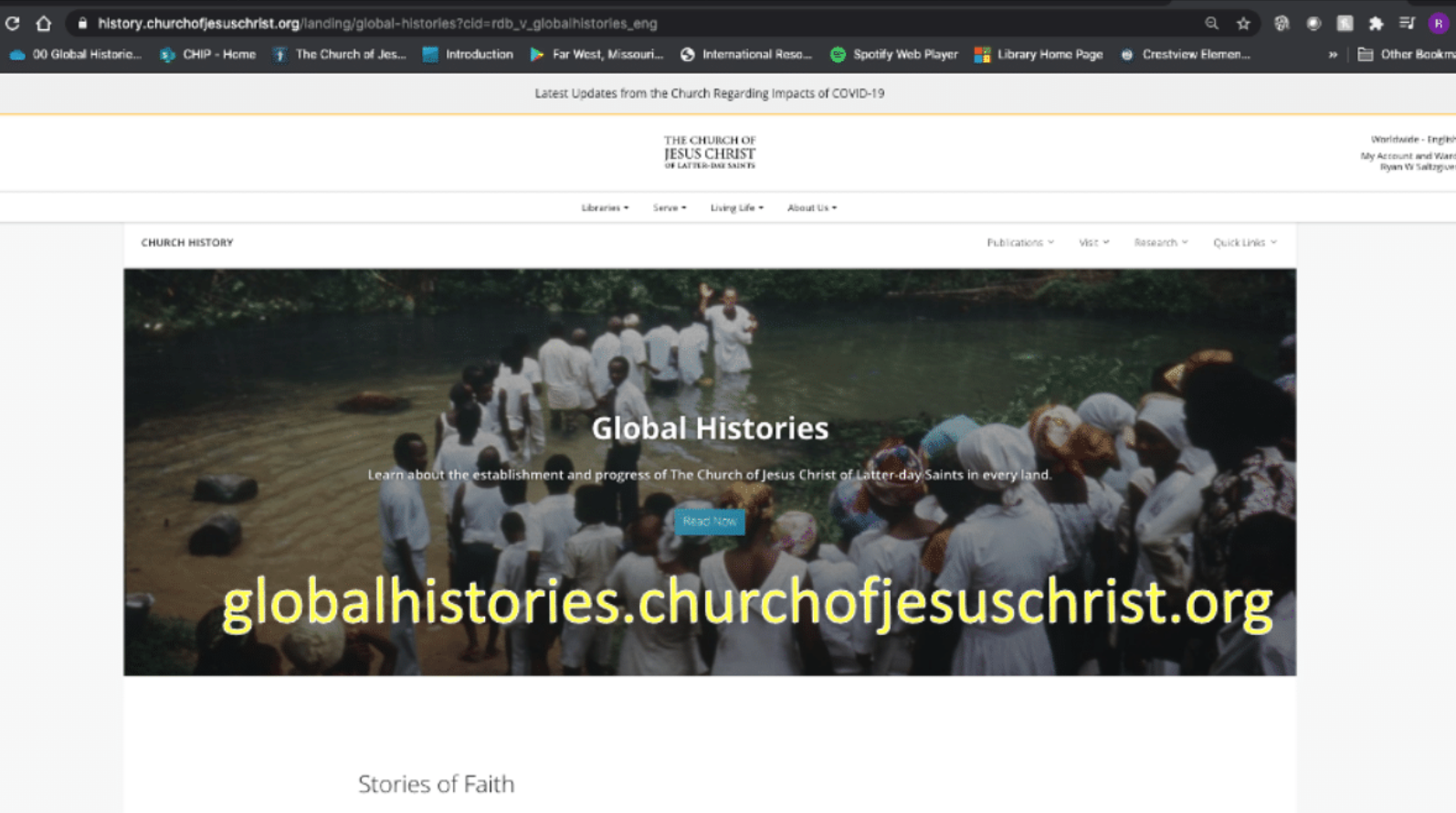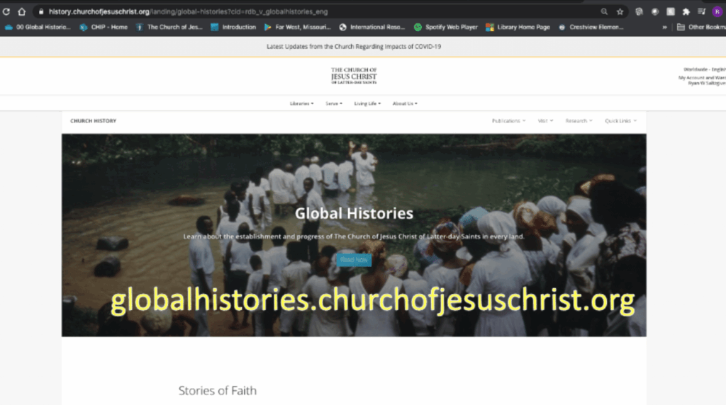 By way of background, let me provide a brief overview of my experience with the Church history department. Over the past five years, my day job has been as the project lead of the Church History Department’s Global Histories project. Global Histories are very brief histories of the Church in the countries and locales throughout the world where the Church operates. These histories include a brief overview, a selection of stories of faith, a short chronology of Church events, a ”by the number” page with demographic information of religious affiliation and Church growth in that place, and a selected bibliography.