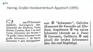 This is from a standard Egyptological lexicon and dictionary. As a matter of fact, I use this dictionary in my classes that I’m taking right now. It’s standard in the field. If you look up the entry for “sister” in Egyptian — snt, and this is the form of Egyptian spoken in Abraham’s day that this dictionary is covering — you’ll discover a couple of entries.