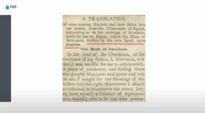 Here you go — this is the 1842 Times and Seasons superscription that Joseph Smith gave to the Book of Abraham. He says it’s “written by his own hand upon papyrus.”