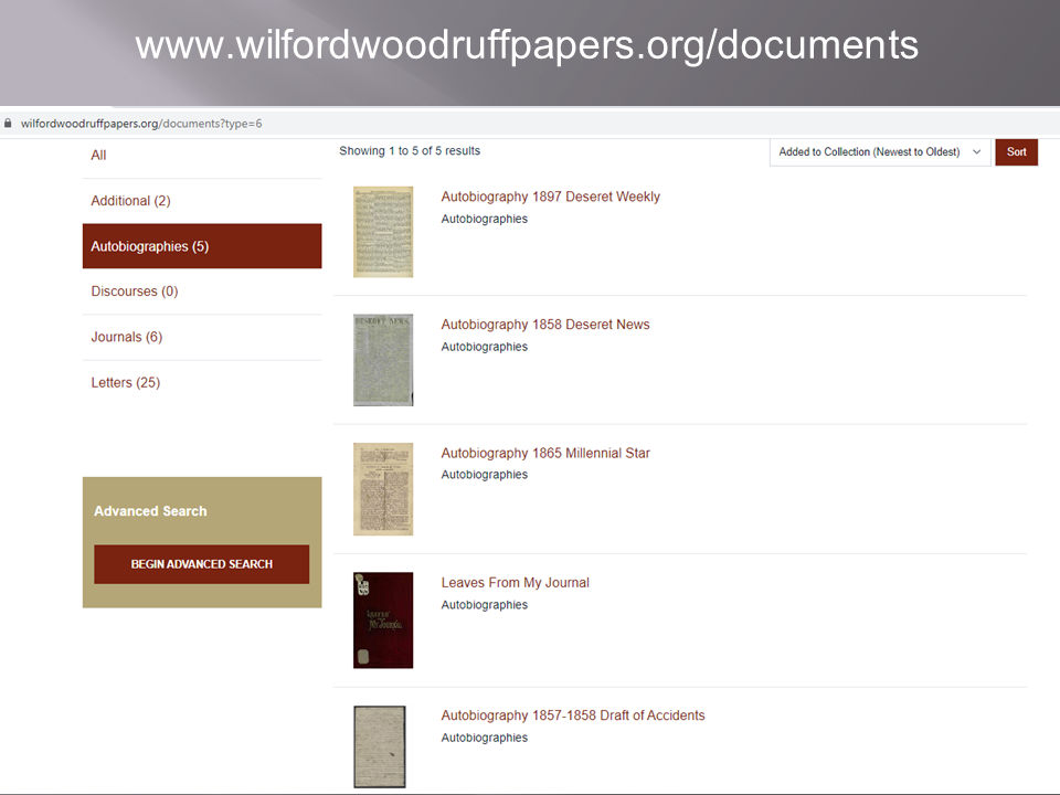 Once we transcribe a document, then it moves to the website, and you can see the five autobiographies here. And so, on September 1, the other six autobiographies will be uploaded and we will have finished all of the autobiographies. Through the amazing technology, you can then go to these documents and click on hyperlinked people, places, topics.