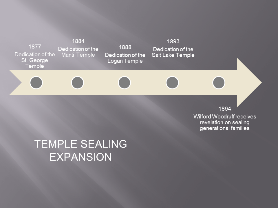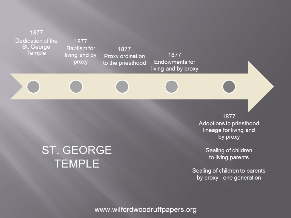 So, it wasn’t until the St. George temple that all ordinances for both living, and the dead were administered. The first proxy ordinations, the first proxy endowments, and the first sealings. One generation. The feeling at that time was that you could only seal – as Joseph had instructed in 1840 – you can only do the ordinances for those who were worthy. And if it was for someone outside your family, then a ministering Angel needed to come and authorize that.