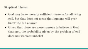 Skeptical theism again has a part to play here. We will never know the honest answer for God’s hiddenness, but that does not mean that God does not have a reason for remaining hidden.