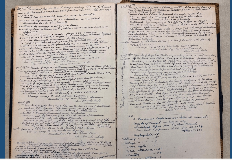 Eventually, the meeting gained greater institutional sanction; it was announced every week in the Mowbray Branch Sacrament services on Sundays. The mission newspaper encouraged attendance, saying that the meetings proved very inspirational to all who attend them and are a splendid means of better acquainting the members with the gospel, a beautiful endorsement. For more than a decade, Daniels ensured that his children took careful minutes of each Cottage meeting, and these minutes made the meetings official; they legitimized the Bible study class.