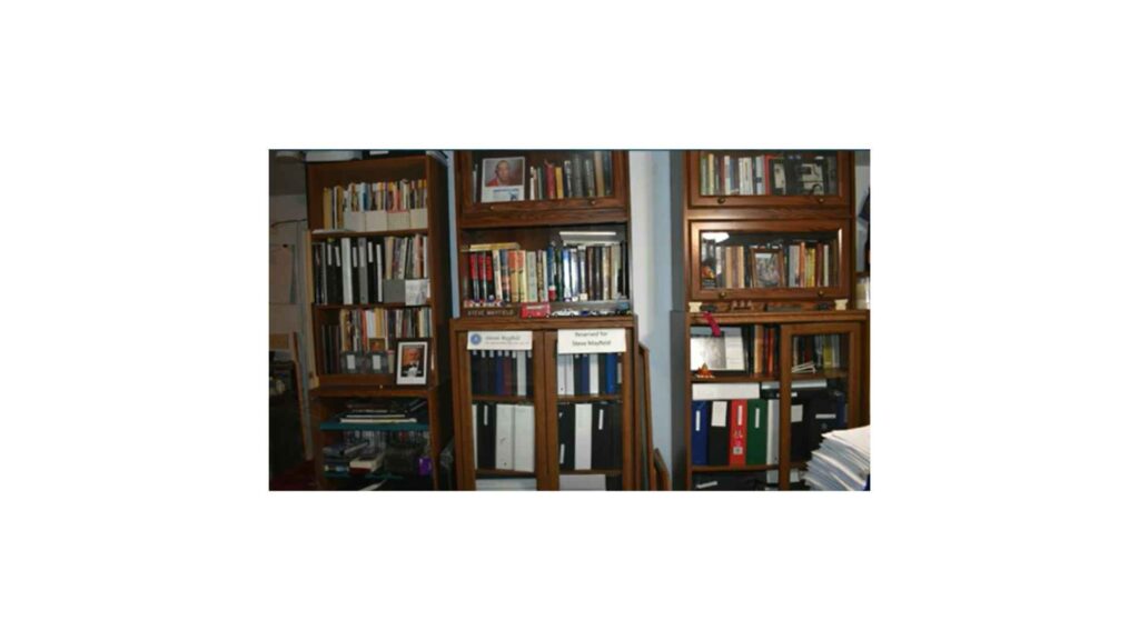 Steve’s Hofmann collection, I might add that Steve has a huge collection overall and a good portion of it is now at Brigham Young University and the rest will go there eventually. But his Hofmann collection alone includes three bookcases as you can see, 30 to 40 binders, and 25 boxes of material.