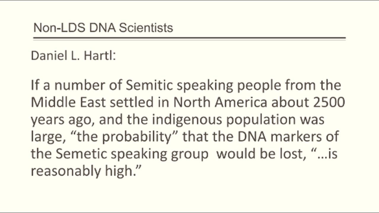 Quotes from those non-LDS scientists can be found in our paper, but to cite just one of these non-LDS geneticists, Daniel Hartl says, (and this is a paraphrase of a quote),