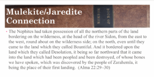 We do not have the Mormon’s story of Mosiah1’s meeting with the people of Zarahemla. We cannot know how he couched that story. However, later information tells us that Mormon saw the people of Zarahemla (descendants of Mulek) as a destructive force that he linked to the Jaredites. The strongest connection between the people of Zarahemla and the Jaredites comes when Mormon declares that they come from the same place.