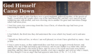 Mormon showed that there were prophecies. He dramatically fulfilled his task of showing when a group of people gathered at a temple in Bountiful and witnessed God himself descend.