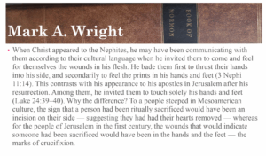 The difference was not simply in the type of wounds. More importantly, the wounds defined the person who stood before the apostles in the Old World and stood again before those gathered in Bountiful in the New World. They knew Jesus had died; had witnessed his death. They needed to know that the very Jesus they had seen die was now the living being before them.