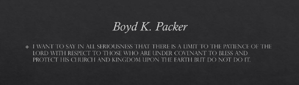 This, in turn, means as a second corollary that those who do Mormon studies do not keep their covenants. Packer would have agreed at least in part with Park. He stated that