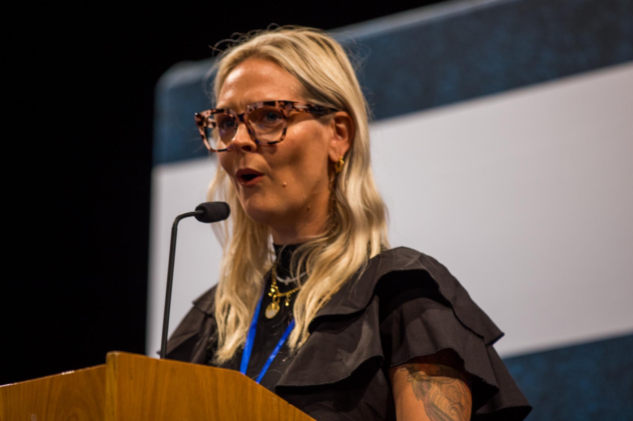 Hello. How are you? I am elated to be here. Although my neuroma’s like, “Uh, why are we wearing heels? We hate this decision.” It’s fine. It’s great. I am thinking of that—oh, it does move—that is lovely. I almost don’t need a microphone, so I apologize in advance.