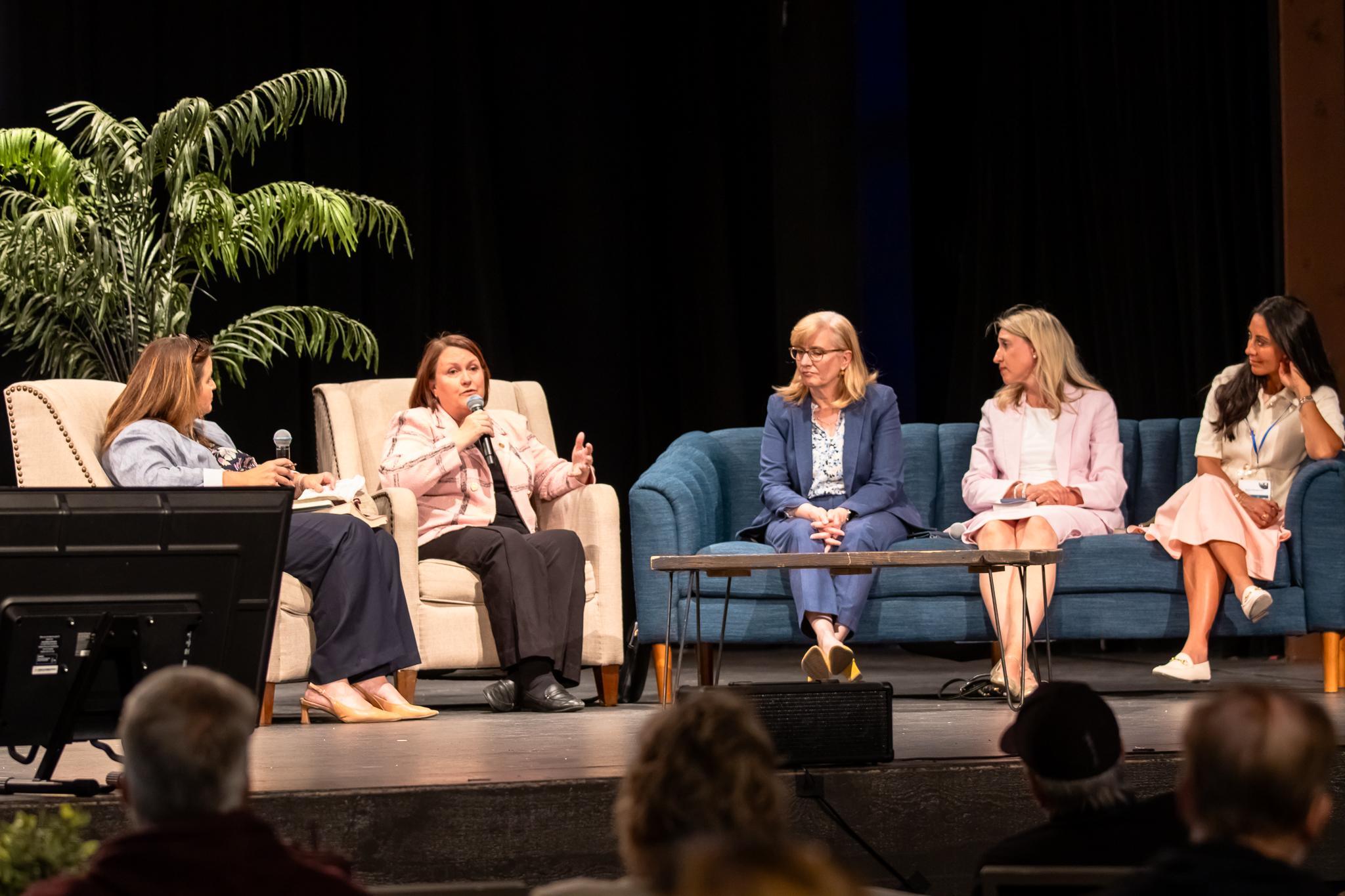 With all of this said, because we’re talking about experiences of Latter-day Saint women, I would like to invite a panel of four individuals to come and join me here on the couch. I’ve talked about women in the historical past, some in the more recent future, but I want you to see some of these incredible women who are alive and kicking today.