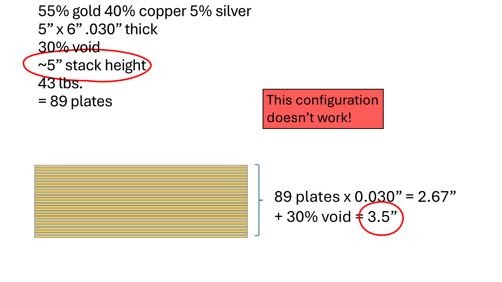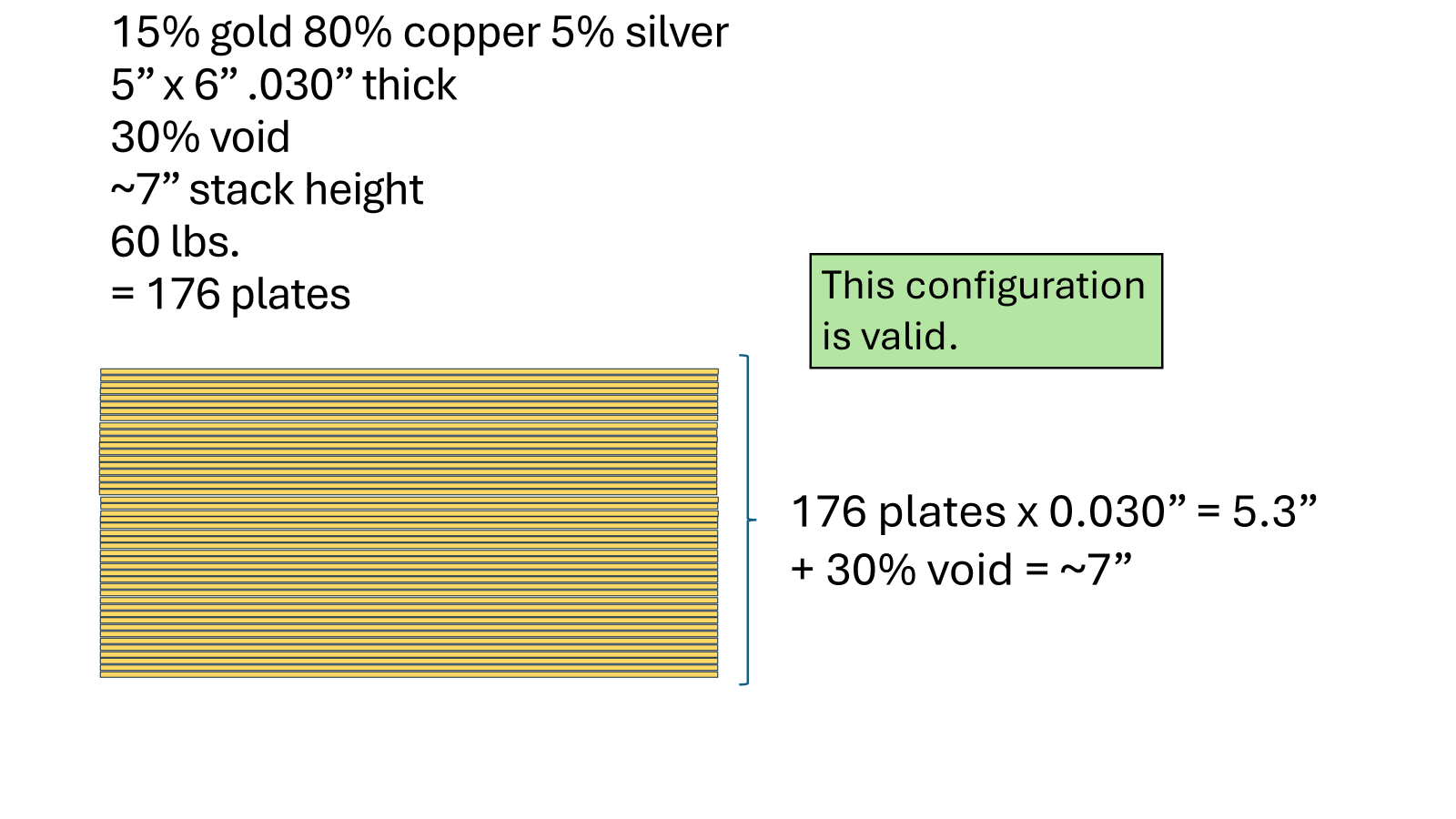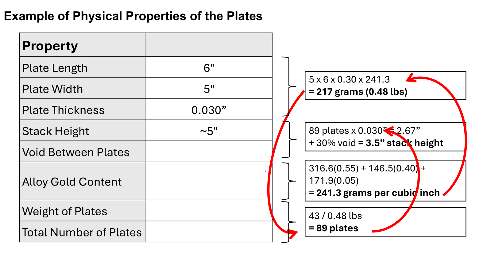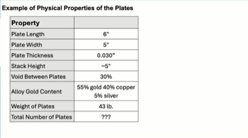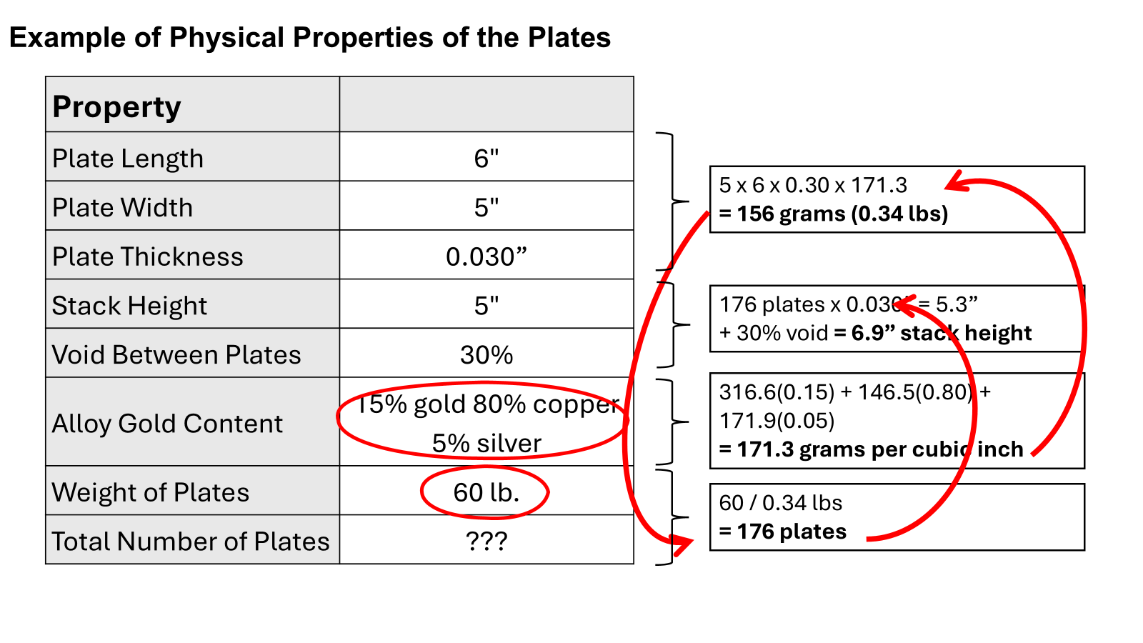 So let’s say there’s a 30% void. Now the gold alloy content – gee, you know, what were the plates made of. We’ll talk more about what that is and how that works. But for now we’re just going to say they were 55% gold and 40% copper and 5% silver.