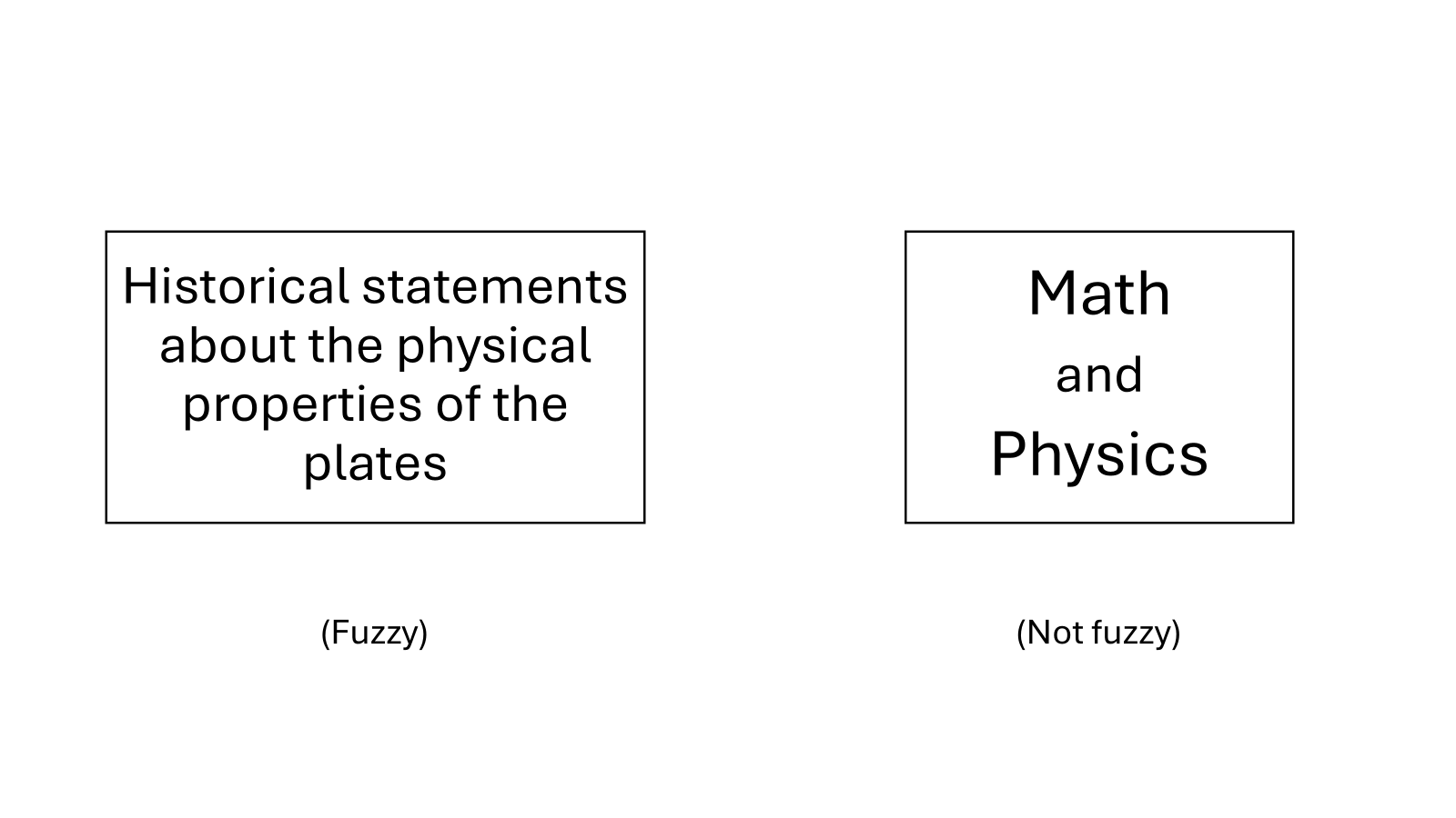 We have two components that we have to work with, two sets of data. The first one is historical statements about the physical properties of the plates. And those are fuzzy, right?