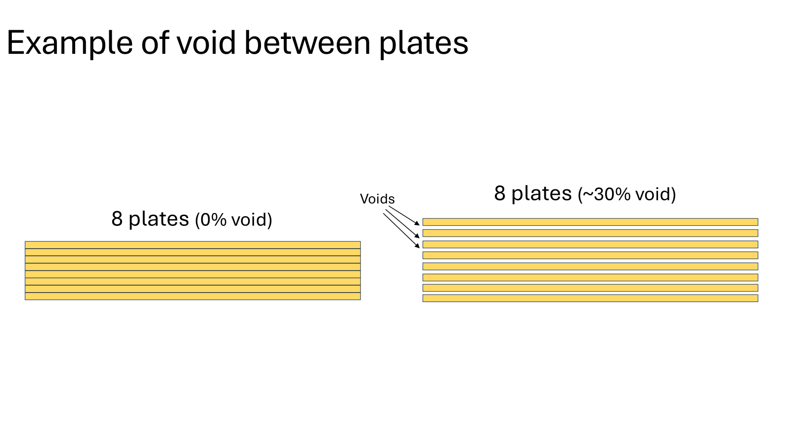 Just really quick, if you’re not familiar. This is a picture of eight plates. There’s zero void there. They’re exactly on top of each other. That’s not how actual physical plates work. There’s what we call ‘voids’ between the plates because they can’t be perfectly flat. So this is a pictorial example of, say, 30% void.