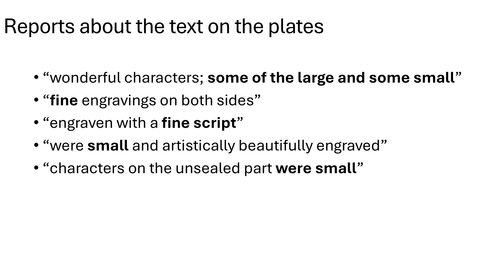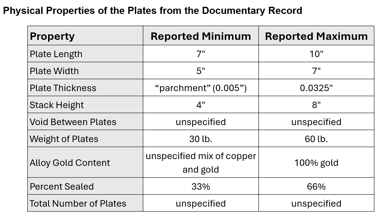 We don’t know how he knew this. We knew he was some sort of a witness of the plates. He talked about hefting the plates. We don’t have any report near contemporary that said he actually saw the plate. But for whatever reason, William Smith said they were an alloy.