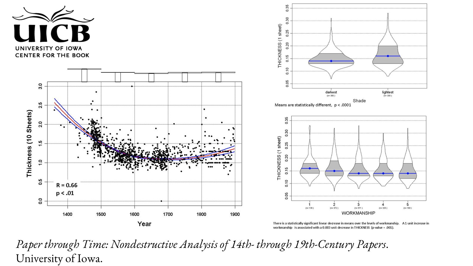 It turns out that the good folks at the University of Iowa, for some reason, felt compelled to measure 1500 books and the thickness of the paper. For the last 500 years, they have a collection of 1500 books, and they just measured all the paper. So I didn’t have to do that, which was really nice.