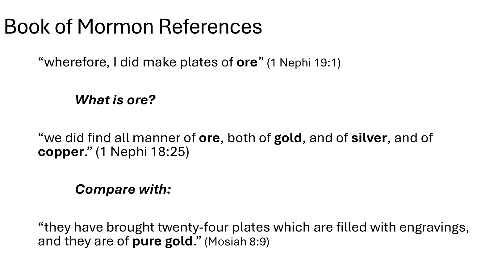 So, just really quick on that. William Smith, many decades later said, ‘well, the plates were a mixture of gold and copper.’