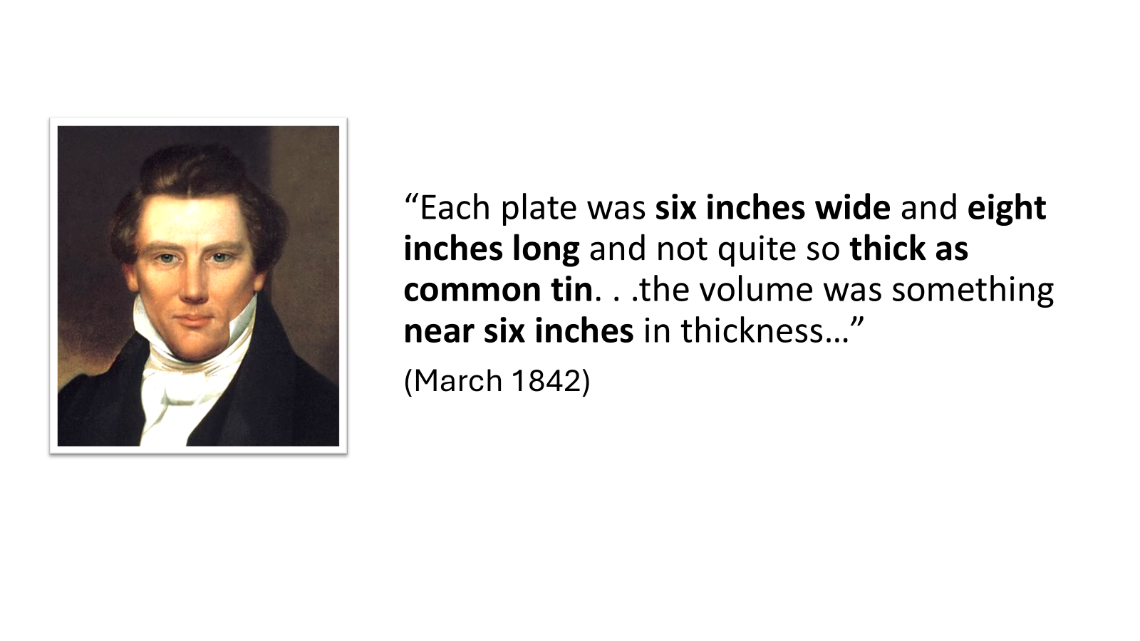Dimensions are slightly less. So this is where Joseph Smith was wrong. He was wrong– I mean, a little bit. He was like within 10% of being right. 6” x 8” x 6” x 0.020”. They were slightly less than that. You really can’t make it work at 6” x 8” x 6”. But he was really, really close. And he didn’t get out a tape measure and measure it. Right? So he was actually remarkably accurate in his estimate.