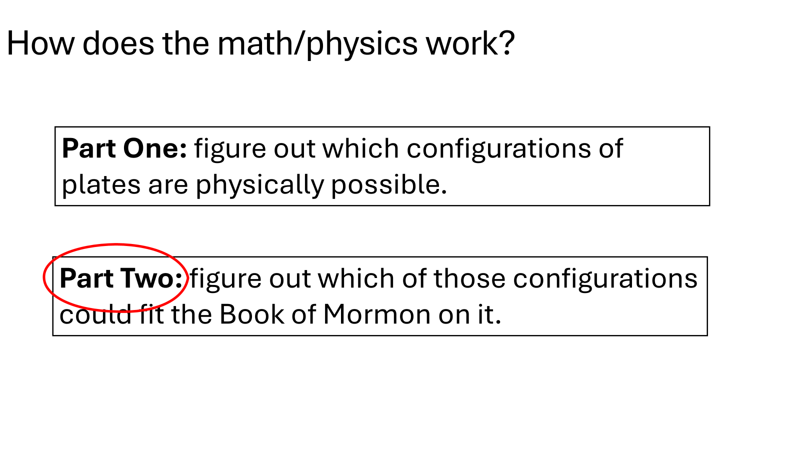 - Part two: figure out which of those configurations the Book of Mormon could fit on.