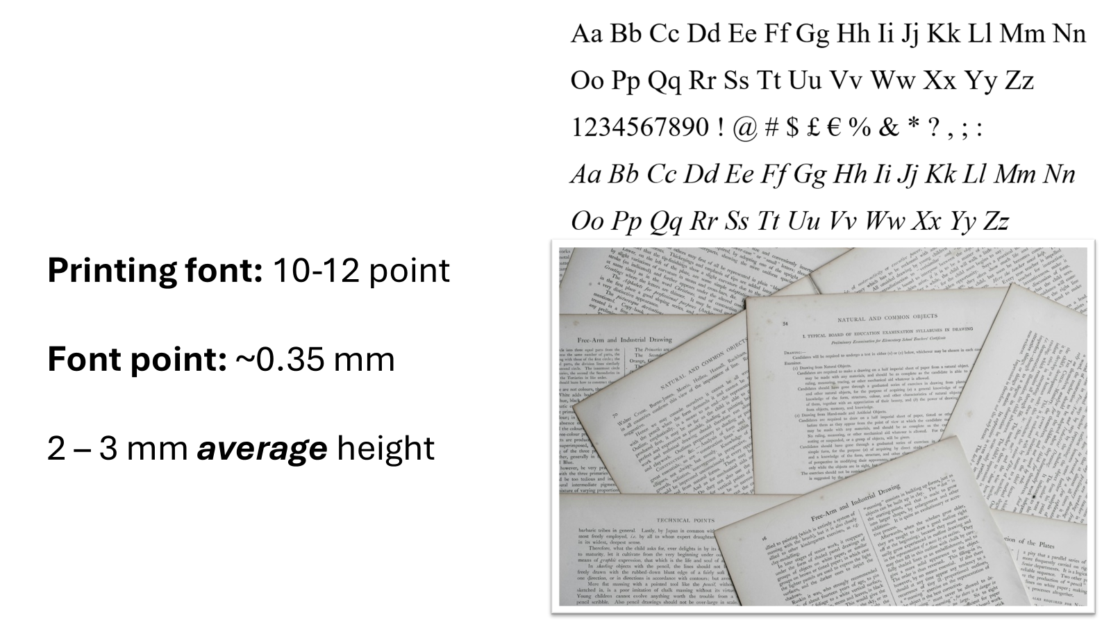 Now if you look at the text size and density, that’s the next chart here. We mostly need two and a half to about 5.5 mm in height.