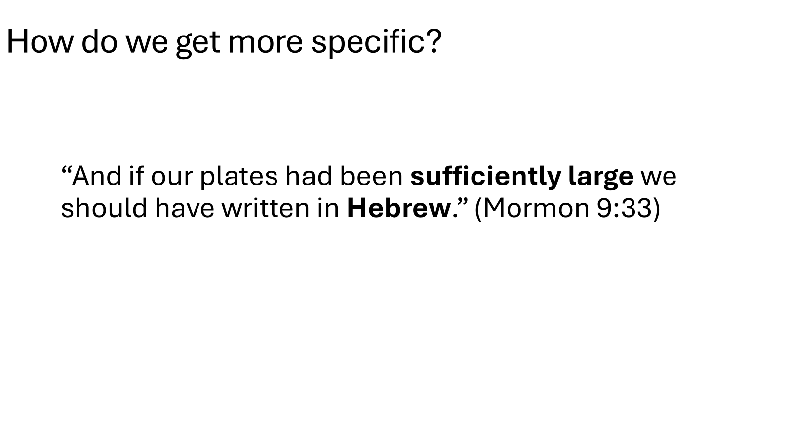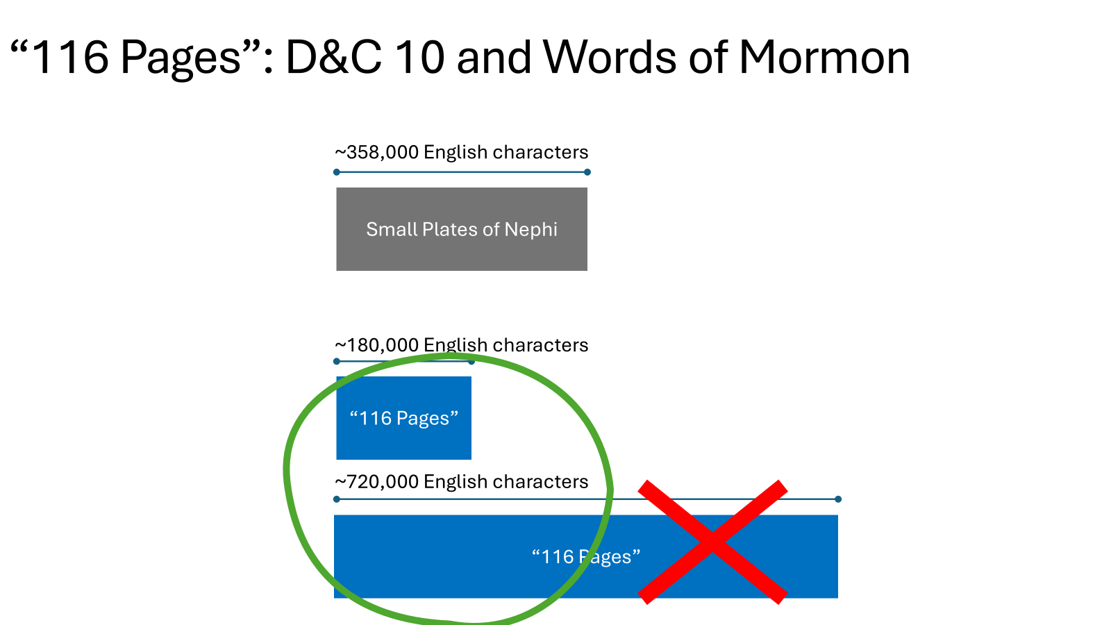 So to be honest, there’s a lot of different ways to interpret this with a historical record. But if you just look at the scriptures themselves. In the appendix of the paper, I kind of go through my reading of section ten and the Words of Mormon. It sure seems to me that it’s really hard to argue that 116 pages were longer than the small plates. And so that leaves us with, ‘well, they were half the size or maybe the full size’. So that’s what I’m going to go with.